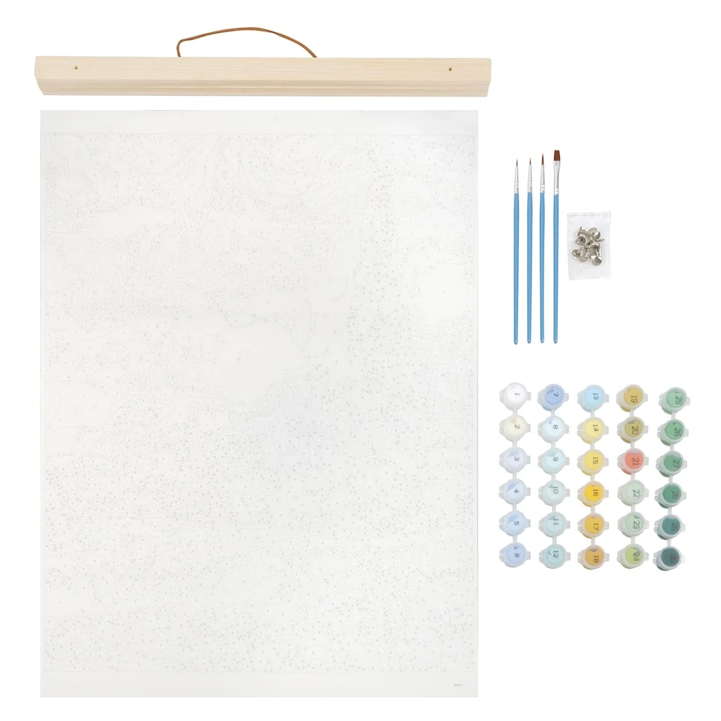 - Pre-printed canvas sheet with guidelines and numbers (16″ x 21.5″/40.6cm x 54.6cm)