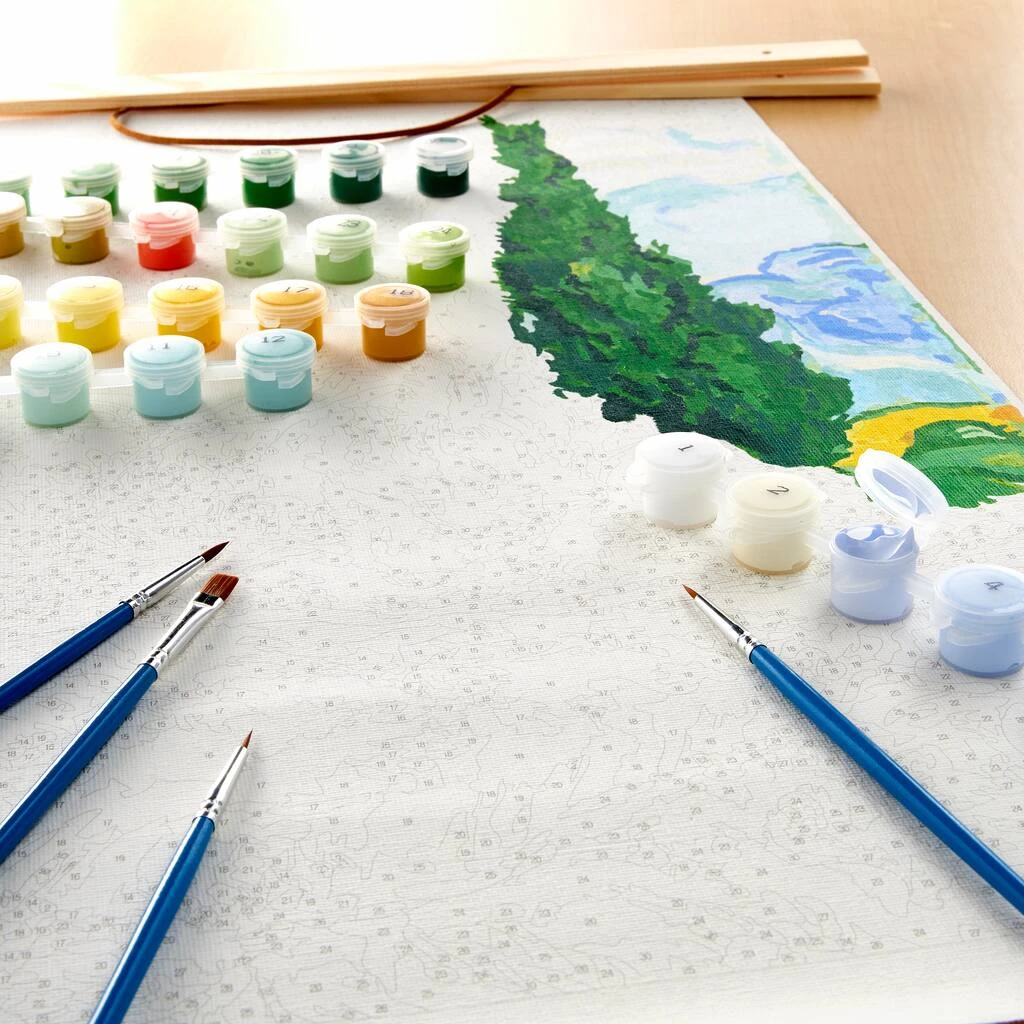 Whether you are a beginner diving into the world of painting or a seasoned pro, this paint-by-number kit from Artist’s Loft will provide a fun and relaxing outlet for your creativity. Complete with brushes, paints, canvas and a wooden display hanger, this kit has everything needed to recreate the classic work, “Wheat Field with Cypresses” by Vincent Van Gogh.