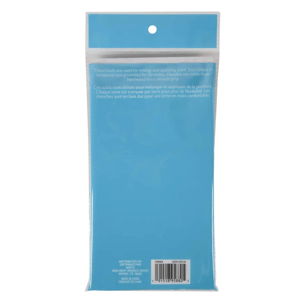 This set of metal palette knives is sure to make a useful addition to your art supplies. You can use these knives to mix paints and pastes or apply them on your canvas. Each blade is tempered and grounded for flexibility. Handles are made from hardwood for a smooth grip.