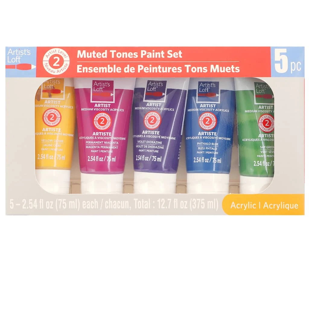 Bring your creative projects to life with this acrylic paint. The paint colors of this pack include: Yellow Ochre, Permanent Magenta, Violet Dioxazine, Phthalo Blue, and Sap Green.