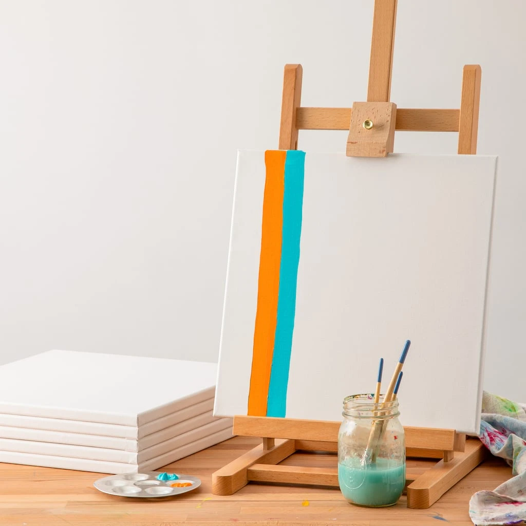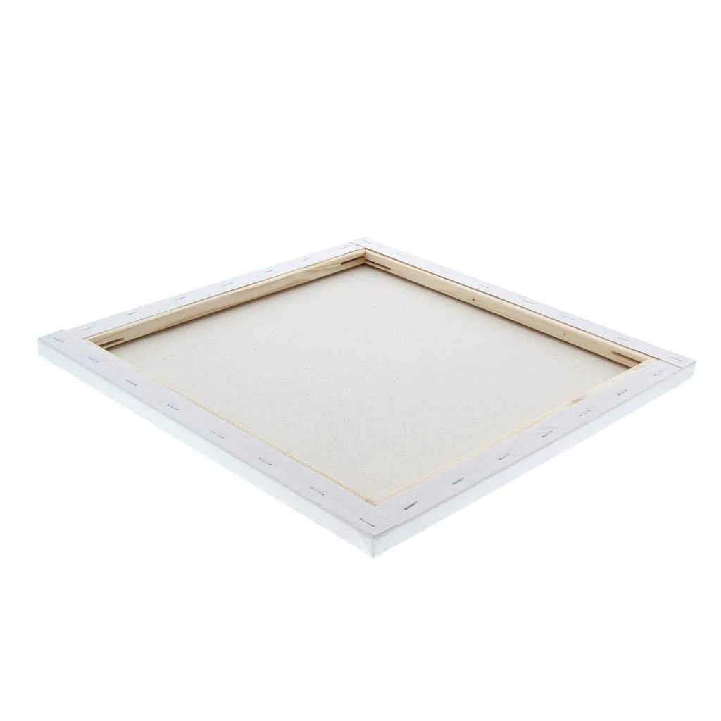 - Stretched, woven and primed canvases with stapled-back frames