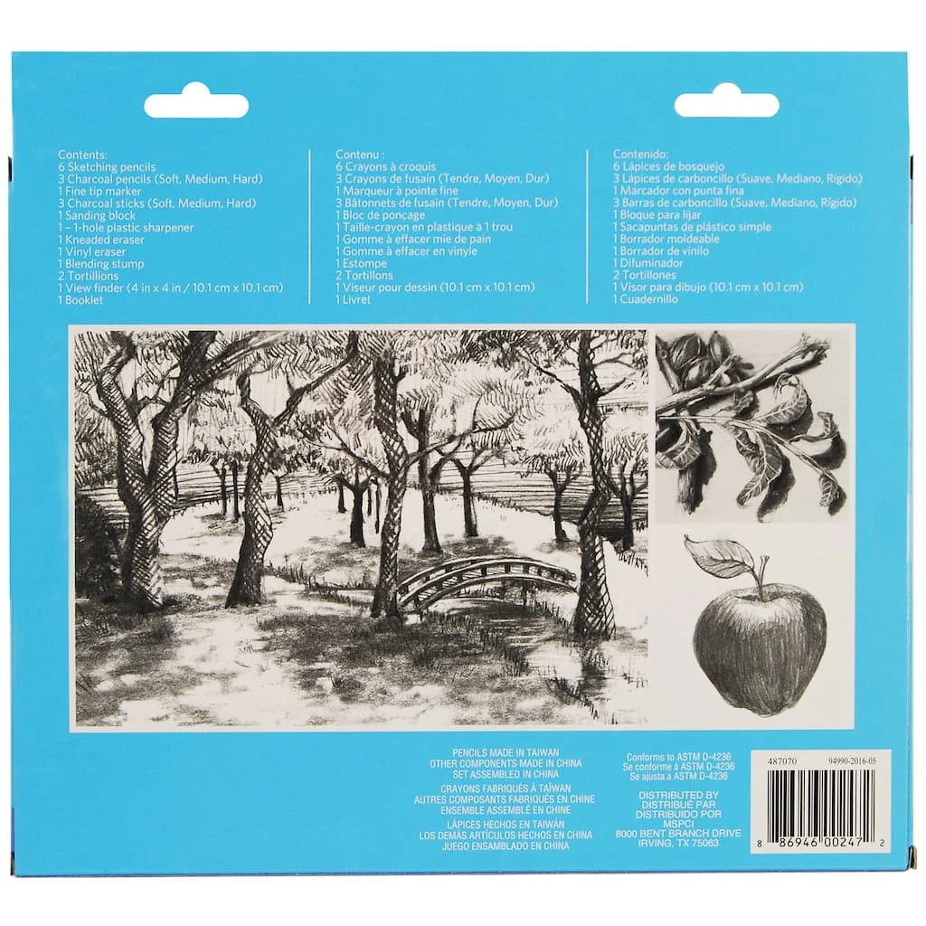 - 3 charcoal sticks (soft, medium and hard)