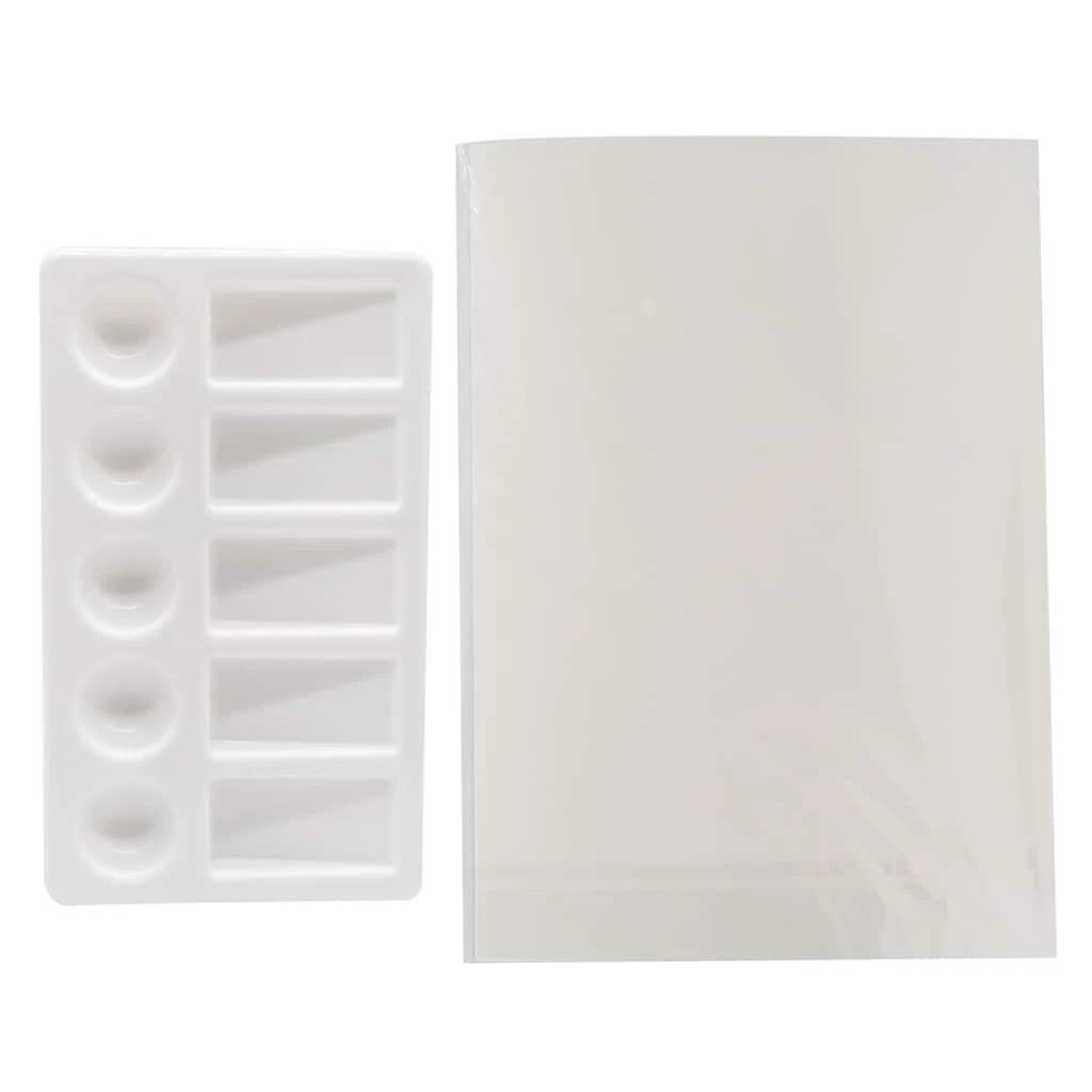 - 4 synthetic, short handle brushes (two #4 flat and round, two #6 flat and round)