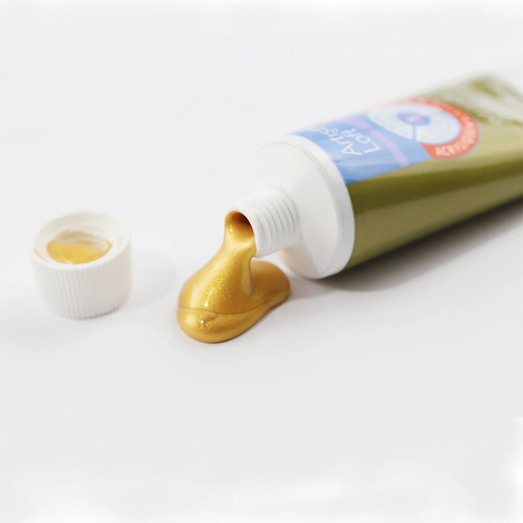 Choose from an assortment of these classic metallic colors for your next project. They’re fast drying, water- based, and extremely versatile. Use them in a variety of painting techniques and on a plethora of surfaces. With a thick buttery texture, high metallic pigment content, and strong covering power, these permanent, lightfast paints are non-yellowing, ideal for use on stretched canvas, wood, metal, and more. The paint colors include: metallic white, silver, copper, old gold, bronze, and metallic black.