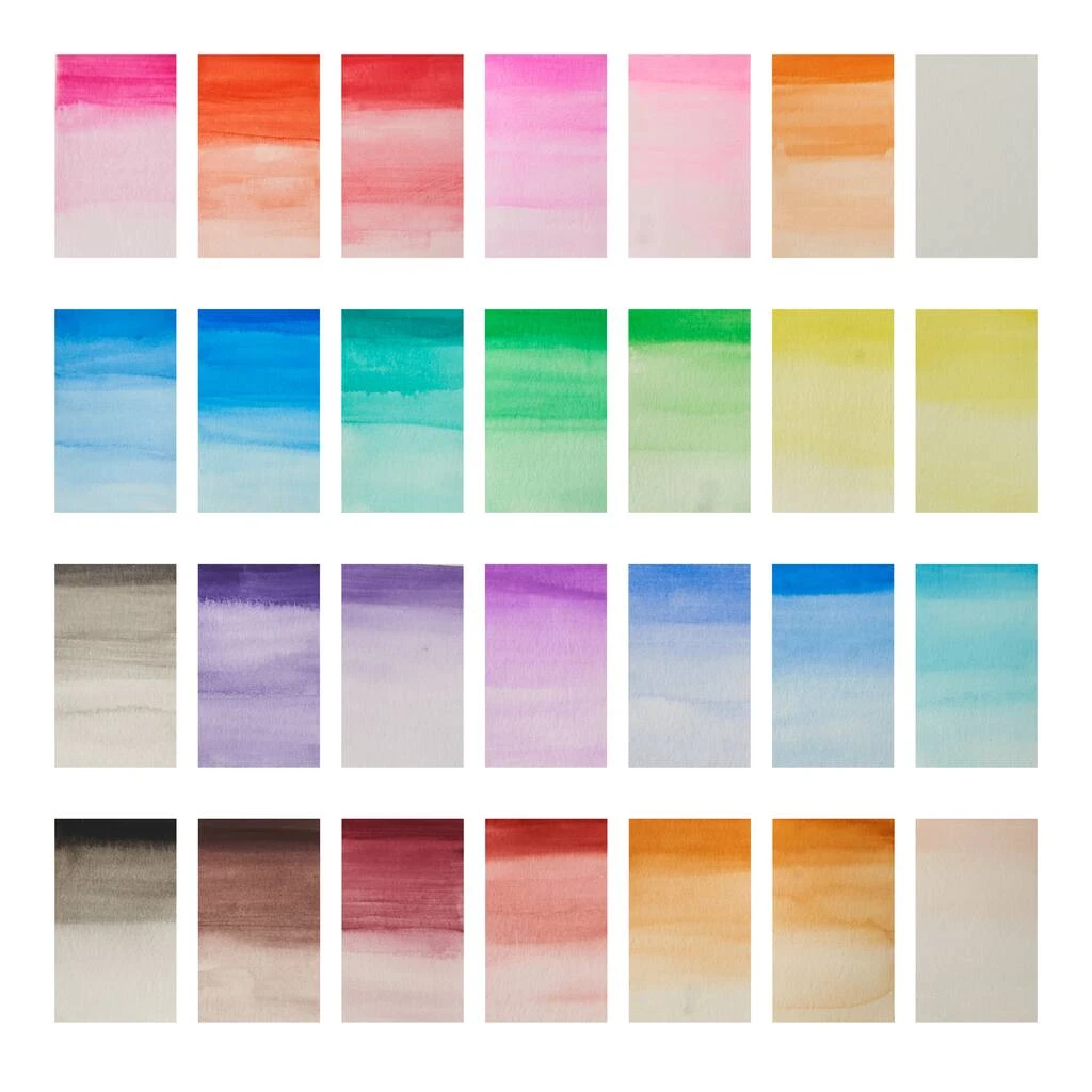 Bring your imagination to life with vibrant watercolors! This set contains brilliant colors that will help create beautiful works of art. Formulated to dissolve easily in water, this dry cake pan set is perfect for students at work, home, or in class. This set includes the following colors:ย Black, Blue, Buff, Burnt Umber Light, Cobalt Blue, Deep Gray, Deep Green, Deep Red, Lemon Yellow, Light Blue, Light Orange, Light Purple, Light Rose Red, Light Yellow, Orange, Pale Pink, Prussian Blue, Purple, Raw Sienna, Red, Reddish Brown, Red Purple, Rose Red, Sap Green, Sky Blue, Vermilion, White, and Yellow Green.