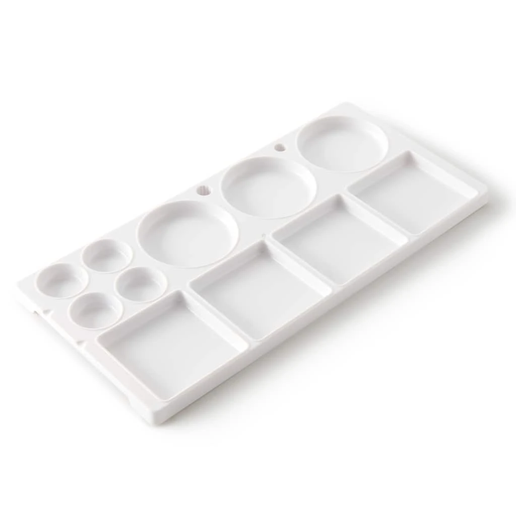 Supply your passion for art with the proper tools. This artist palette has 11 wells for you to mix and match colors in, and features a simple rectangular design to help you let your colors fly!
