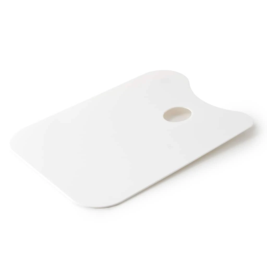 Supply your passion for art with the proper tools. This traditional artist palette has a flat surface for you to mix and match colors in, as well as a convenient thumb hole for ease of use. This palette is ideal for acrylic paints.